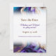 Annoncez votre mariage avec son élégant mélange d'or métallique, de violet riche, de bleu royal et d'aqua décadent. Les couleurs semblent couler derrière le libellé qui est sur un arrière - plan blanc et peuvent être personnalisées avec vos détails. Reportez-vous aux éléments de coordination de cette collection.