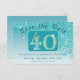 Envoyez une élégante "Save the Date" à vos amis et votre famille pour votre 40e anniversaire avec cette parties scintillant bleu turquoise moderne tombant sur le côté d'un arrière - plan dégradé turquoise.