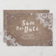 Elégante dentelle vintage blanche et parties scintillant d'argent brillant sur burlap rustique enregistrer les cartes de date. idéal pour mariage rustique, grange mariage, mariage campagnard et mariage vintage. Voir toutes les pièces correspondantes dans la collection.