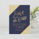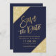 Typographie or sur personnalisable marine bleu parties scintillant couleur bloc, et faux or géométrique bandes chic enregistrer mariage date, parfait pour élégant, élégant mariage,