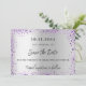 Un moderne et élégant Save the Date pour un mariage. Un arrière - plan faux argenté, violet décoré, parties scintillant faux couleur lavande. Personnalisez et ajoutez une date et des noms. Le texte : Save the Date est écrit avec un grand script de style à la main tendance.