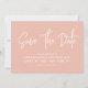 La calligraphie moderne enregistre la date dans pastel peach avec un code QR numérisable pour un site Web ou les coordonnées sur le dos.