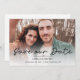 Plongez-vous dans l'élégance de la calligraphie moderne avec notre exquise Photo Save The Date Cards! Chaque pièce délicatement façonnée, chaque courbe témoigne de la beauté de l'amour. Avec un mélange de charme intemporel et d'esprit contemporain, ces cartes capturent l'essence de votre voyage ensemble dans un style qui vous est propre. Laissez votre histoire d'amour se dérouler dans chaque mot méticuleusement écrit, invitant vos proches à partager la magie de votre journée spéciale. C'est plus qu'une simple carte ; c'est le maintien de moments chéris, la promesse d'un avenir rempli d'amour et de joie.
