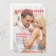Un mariage unique et moderne sauvez la carte de date conçue pour ressembler à une couverture de magazine. La carte présente une photo préférée du couple heureux avec SAVE THE DATE comme titre de magazine dans un corail vibrant. Parfait pour une photo légère. Personnalisez avec vos noms, date mariage, emplacement et code QR pour votre site Web.