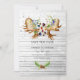 Carte de sauvegarde de la forêt sauvage rustique avec des bouquets peints à l'aquarelle avec des baies forestières - myrtilles, mûres et brindilles, pommes de pin, fougères, plumes et bois de cerf. La photo au verso est facultative.