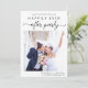Moderne enregistrez l'annonce de la date pour votre réception post-elopement ou mariage privé avec votre photo, "Save The Date For Our Happily Ever After Party" dans un mélange de typographie simple et un script tendance avec des swashes et vos prénoms, date de réception et emplacement. Au contraire, fournissez plus de détails et ajoutez vos noms dans un script de type signature.