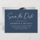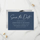 Enregistrez simplement la carte de date avec "Save the Date" dans un script manuscrit blanc avec un arrière - plan navy/denim. Personnalisez le moderne enregistrer la carte de date en ajoutant vos noms, date mariage, emplacement du mariage, site Web mariage, etc. Le minimaliste enregistrer la carte de date inverse pour afficher votre photo de fiançailles horizontal préférée.