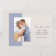 Mariage enregistrer les dates dans un motif en papier bleu et beige faux lin, parfait pour une plage ou mariage côtier. Customisez avec votre photo et vos coordonnées de mariage, envoyez un courriel à votre famille et à vos amis pour leur demander de réserver votre date de mariage.