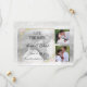 Photo Save the Date. Cette Sauvegarde de la Date est un modèle pour la Mariée et la Salle à personnaliser. Les photos en couleur ont été découpées en carré. La photo de base en noir et blanc a été recadrée à une photo 4x6. Il a un cadre doré avec des fleurs roses.