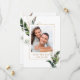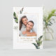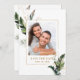 Cette photo mariage enregistrer la carte d'invitation date dispose d'aquarelle vert feuillage tropical, feuilles de palmiers, feuilles de bananes avec des accents feuille faux or. Il est parfait pour une plage ou un mariage de destination. >>> Découvrez l'ensemble de la collection >>> https://www.zazzle.com/collections/tropical_foliage_gold_collection-119316977990783186