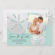 Cette destination de plage élégante et élégante Save the Date présente votre propre photo sur un trio de dollars de sable blanc et un élégant script de calligraphie en lettres manuscrites (qui peut être changé à votre propre texte,) sur un arrière - plan vert seaglass. Une façon merveilleuse d'invitation vos invités à votre tropical bord de mer ou en bord de mer mariage à Hawaii, Floride, Californie, Mexique, ou d'autre destination lieu de mariage. Photographies des dollars de sable par T.K. Goforth, tous droits réservés.