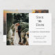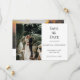 Personnalisez cette photo mariage élégant en noir et blanc enregistrer la carte de date. Il y a de l'espace sur le devant pour une photo et de l'espace sur le dos pour une autre photo. Une excellente façon de montrer ces photos fiançailles. Ajoutez votre site Web mariage au code QR pour que vos invités puissent facilement analyser votre site.