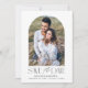 Annoncez votre date de mariage dans le style avec notre photo moderne enregistrer la date. La simple sauvegarde de la carte date comporte votre photo fiançailles à l'intérieur d'un cadre en arc blanc. "Save the Date" s'affiche en noir moderne serif et polices de script. Personnalisez le devant de la date de sauvegarde en ajoutant vos noms, votre date de mariage et votre emplacement de mariage. La carte s'inverse pour afficher un motif rayé noir et blanc.