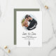 Mariage rustique de pin d'arbre enregistrer le faire-part de date, avec un simple design typographique. Avec le lettrage personnalisable, vous ajoutez vos propres informations. Vous ajoutez également votre propre photo pour ajouter la personnalisation. Le dos a un arrière - plan vert sage et vous donne la possibilité d'ajouter votre site mariage et un code QR pour vos invités à scanner. Idéal pour planifier votre journée spéciale avec un style boho décontracté.