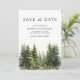 Étonnez vos invités avec ce thème forestier enregistrer la date avec de beaux pins et la typographie moderne avec code QR pour le site mariage. Ajoutez simplement les détails de votre événement sur ce modèle facile à utiliser et ornez cette carte avec vos photos préférées pour en faire une carte unique enregistrer la date.