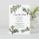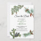 Une belle pinède avec des branches de pins rustiques, des cônes de pins et des aiguilles de pin. Un élégant enregistrer la carte de date avec la verdure idéale pour tout thème mariage. Le verso de la carte présente un monogramme minimaliste. Des invitations de mariage et d'autres articles de papeterie sont également disponibles.