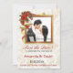 Cloches élégantes avec ruban coulant et fleurs Poinsettia rouges avec bordure en maille d'or pour encadrer une photo sur la mariée et le marié à être. Ce mariage d'hiver Save the Date card est entièrement personnalisable sur tout le texte et bien sûr la photo. Arrière - plan en or et blanc subtil sur l'avant et l'arrière de la carte. Une belle façon pour la mariée et le marié annoncer leurs noces à venir et s'assurer que les amis et la famille réservent cette date spéciale.