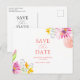 Verkünden Sie Ihre Verlobung mit dieser Blumenhochzeit speichern Sie das Datum Postkarte. Es bietet einen Mix aus klassischer und Skripttypografie in orange auf einem knackigen weißen Hintergrund. Eine Grenze mit einzigartigen Aquarellbildern mit Blumenrahmen in den Farbtönen Pinks, Pfirsich, Orange und Lila. Verwenden Sie die Template-Felder, um mit Ihren Informationen zu personalisieren.Um die passende Hochzeitsbriefpapier-Suite und weitere Ideen zu sehen, besuchen Sie Do Tell A Belle im Zazzle Marktplatz. Einzigartige Aquarellkunst und Design von Victoria Grigaliunas of Do Tell A Belle.