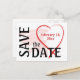 Wenn Sie einen schnellen Weg brauchen, um Leute über Ihre besondere Veranstaltung zu informieren, dann ist diese "Save the Date" Postkarte genau das Richtige für Sie. Fette "Save the Date" Wörter, die in Großbuchstaben auf den Kanten der Postkarte gestapelt werden, erhalten sofort Aufmerksamkeit, während das rot gebürstete Herz keinen Zweifel an der Veranstaltung verlasse. Im Inneren des Gebäudes ist das Datum Ihrer Veranstaltung, die eine vollständige Anpassung in Schriftart und Farbe. Die Rückseite der Postkarte ermöglicht auch eine vollständige Anpassung mit dem Zusatz von Namen.