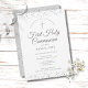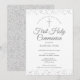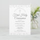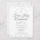 Une élégante invitation pour annoncer votre Première Sainte Communion avec de délicates paillettes d'argent. Vous pouvez personnaliser les détails de votre célébration spéciale avec une élégante écriture argentée. Conçu par Thisisnotme©