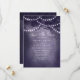 Annoncez votre journée spéciale avec nos lumières à cordes d'arbre violet enregistrer la carte de date. Ce design enchanteur présente un arbre rustique orné de lampes à cordes, créant une atmosphère chaleureuse et accueillante. Parfait pour les mariages extérieurs et boisés, cette unique sauvegarde de la date séduira vos invités et donnera le ton parfait pour votre mariage.