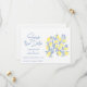 Annoncez votre journée spéciale avec un éclat de fraîcheur en utilisant notre Lemon Vines Enregistrer la carte de date. Cette charmante carte présente des vignes citronnées bleues et jaunes, ajoutant une touche méditerranéenne à votre mariage. Informez vos invités de votre prochaine célébration de manière lumineuse et vivifiante.