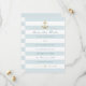 Customisez cette élégante et moderne Elégante Nautique Mariage Rappel Enregistrer La Date Flat Card Invitation. Design rayé bleu clair et blanc, conçu comme un modèle pour une personnalisation facile. La couleur bleu pastel des bandes est personnalisable et peut être changée en n'importe quelle autre couleur, vous pouvez la changer en changeant la couleur Arrière - plan. Veuillez noter que l'or sur ce design, sur l'ancre d'or, n'est pas une véritable feuille d'or, c'est une impression couleur. La couleur du texte est personnalisable, les éléments dorés peuvent être déplacés ou supprimés. Vous pouvez également modifier le style d'angle.