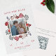Red & Navy Winter Berries Photo & QR Code Wedding Enregistrer la date