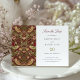 Diese "Save the Date"-Karte ist eine schöne Hommage an William Morris's ikonisches "Strawberry Diief"-Design, das perfekt dazu geeignet ist, den Ton Ihrer bevorstehenden Hochzeit zu bestimmen. Das komplizierte Muster ist reich an Symbolik und natürlichen Bildern, mit Vögeln, Erdbeeren und Blumen in einer harmonischen Palette von Rottönen, üppigen Grüntönen und weichen Cremes. Das detaillierte Kunstwerk packt die Karte in ein Gefühl zeitloser Romantik, während die elegante Typografie Ihren besonderen Tag verkündet. Diese Karte dient nicht nur als Vorankündigung, sondern auch als Kunstwerk, das Ihre Gäste einlädt, ihre Kalender für eine Veranstaltung zu markieren, die so denkwürdig wie das Design klassisch sein wird.