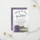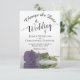 Cette belle carte est conçue pour informer vos invités si vous avez besoin de changer la date pour votre prochain mariage en raison de la pandémie en cours, ou pour toute autre raison. Il présente une photographie d'un seul rose pourpre ou lavande à longue tige réfléchissant dans un bassin d'eau avec vagues et ondulations. Le texte est une calligraphie de script sophistiquée sur un arrière - plan blanc. Le dos est orné d'une motif moelleuse marbrée. Une façon parfaite de faire savoir à vos amis et à votre famille que le plan a changé.