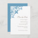 Design chic et élégant de la fleur de lis bleu motif faire-part de mariage. Motif de coin fleur de lis détaillé en bleu français. Customisez avec vos noms et vos informations de mariage en lettres taupe foncé. Conçu pour correspondre à notre Regency French Fleur de Lis Mariage Collection.
