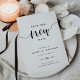 Besoin de reporter ou de reprogrammer votre mariage ? Faites-le savoir à vos invités avec ces cartes élégantes en noir et blanc chic. Le design présente "sauver notre nouvelle date" en haut avec votre nouvelle date de mariage et votre site web de mariage en dessous.