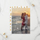 Photo moderne enregistrer la carte de date en espagnol avec votre image verticale fond saigné avec une superposition de texte avec les mots "Reserva la Fecha" dans une fine police blanche manuscrite script. Voici deux lignes de texte pour les détails de votre mariage. Le côté arrière a un motif abstrait en or et blanc et peut être retiré en cliquant sur le bouton "personnaliser". Un design simple mais élégant qui fait de votre photo la principale caractéristique.