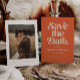 Rétro et élégant enregistrer la carte de date avec la police boho qui dit "enregistrer la date" en couleur orange brûlée. Vous pouvez ajouter une photo au dos.