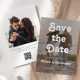 Ce mariage photo Enregistrer la carte Date comporte une superposition de texte en typographie rétro blanche sur une photo verticale. Un écran gris aide à faire apparaître le texte. Au verso, ajoutez une seconde photo carré, ainsi qu'un texte supplémentaire et un code QR pour diriger les invités vers votre site Web mariage. Disponible sous forme de carte imprimée ou de téléchargement numérique.
