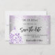 Un arrière-plan moderne en faux argent décoré de paillettes violettes fausses, de scintillements et d'une robe. Personnalisez et ajoutez une date et des noms. Le texte : Enregistrez la date est écrit avec un grand style de lettrage à la main tendance.