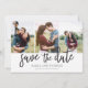 Ce minimum de 3 photos enregistrer la carte de date dispose d'un magnifique script peint à la main en esprit libre. Ajoutez une photo supplémentaire et du texte personnalisé à l'arrière.