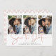 Art Déco Rose Gold manuscrit Enregistrer la date Carte photo multiple dans une police élégante qui évoque une atmosphère romantique manuscrite. Au fond, un design art déco géométrique et tendance, en papier doré rose chic. Conçu pour utiliser trois de vos photos préférées pour une personnalisation supplémentaire. Ajoutez facilement vos noms et dates pour un design vraiment personnalisé.