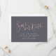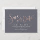 Livré à la main enregistrer le script de date en feuille d'or faux rose sur couleur modifiable gris fumée, élégant et élégant, grand moderne simple personnalisé enregistrer les cartes de date. Voir toutes les pièces correspondantes dans la collection.
