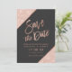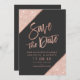 Typographie or rose sur personnalisable gris foncé rose parties scintillant couleur or bloc, et faux rose or bandes géométriques chic enregistrer le mariage date, parfait pour élégant, mariage élégant,