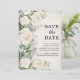 Élégant botanique, mariage floral aquarelle Enregistrez la date avec des roses blanches et de la verdure. Cette Enregistrer la date est une carte non photo. Contactez-moi pour obtenir de l'aide pour vos personnalisations ou pour demander des produits Zazzle supplémentaires correspondants ou coordonnés.