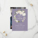 Envoyez-nous de belles cartes de dattes avec une délicate couronne de fleurs d'aquarelle blanche de roses, d'hydrangées, de fleurs mixtes et de verdure sur un arrière - plan populaire de lavande violette. Un visage de type script écrit à la main moderne épelle magnifiquement les noms de la mariée et du marié. Le dos de la carte a un modèle photo pour télécharger votre photo désirée.
