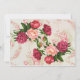 Cette Roses Roses Roses Roses Roses Sauvez La Date Faire-part Mariage présente des roses roses sur un arrière - plan floral rose pour un look victorien ou cottage.