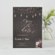 Feux à cordes rustiques avec bocal en maçon et roses sur un arrière - plan sombre. Sauvegardez la date qui peut être customisée avec votre nom.Sélectionnez le bouton "personnaliser" pour modifier le style, la couleur et la taille de la police.