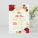 Fleurs romantiques rouge foncé & blanc avec or feuille botanique enregistrer la date invitation Les détails de la parties scintillant sont simulés.