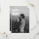 Mariage moderne enregistrez la carte de date avec un design simple et minimal avec une typographie contemporaine audacieuse sur votre photo préférée. La couleur des polices peut être changée en n'importe quelle couleur que vous choisissez dans l'outil d'édition de conception. Le dos a une deuxième image avec un champ pour du texte supplémentaire comme des détails supplémentaires ou votre site Web mariage.