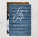 Save The Date Rustic Blue Wood Élégant Script Mariage photo