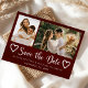 Modern handwritten script hearts rustic burgundy save the date wedding with 2 engagement photos. ++++++++++++++ Suitable for summer autumn fall or winter weddings.