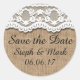 Save the Date, rustikaler Burlap und Lace Runder Aufkleber