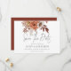 Rustic Terracotta Fall Florals QR Code Mariage. Superbes fleurs avec une ambiance boho dans les tons d'automne de terre cuite et crème et un élégant script set pour Save The Date. Le reste du texte que vous pouvez facilement personnaliser avec vos détails. Ajoutez votre code QR à votre site Web mariage au verso ou supprimez ceci et le texte au verso si cela n'est pas nécessaire. Disponible numériquement ou imprimé.